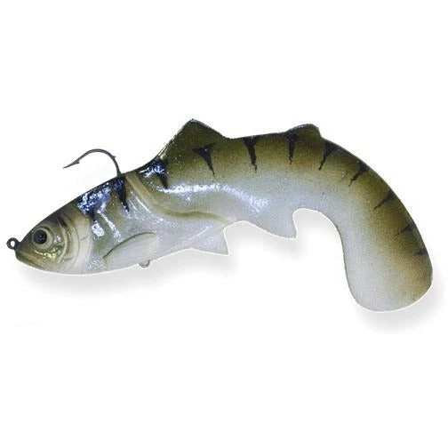 Designed by legendary lure designer, Bob King, the Castaic Kicker is sure to put big bass in your boat. During extensive field testing, the Kicker was also deadly on pike, muskies, and stripers. The unique downward swept tail provides an undulating swimming motion that is completely unique. Subtle, low frequency vibrations call fish in from great distances and the ultra realistic look and patterns of the Castaic Kicker cause large gamefish to hit this lure when other lures are of no interest. The tail has been designed to be the lowest possible thickness, which means The Kicker presents a huge profile but is easily taken into a fishes mouth increasing your chances for a solid hookup.