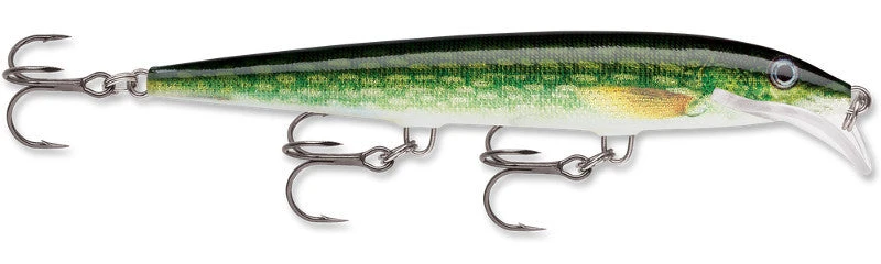 The Rapala Scatter Rap Minnow has a graceful, natural wobble for finesse tactics, yet responsive enough to be fished aggressively. Baitfish skitter and scatter when they are pursued by predators – it’s this erratic and evasive action that triggers the strike. Made of balsa, with a custom Scatter Lip, the Scatter Rap Minnow consistently swims with an erratic and evasive sweeping action – perfectly mimicking vulnerable baitfish. Cast or trolled, it is the perfect choice for any species of gamefish.