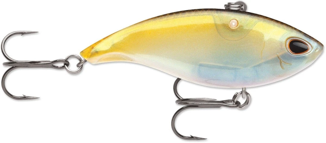 The Storm Arashi Vibe is a 2 3/4 inch, 9/16 ounce lipless crankbait designed for when the bite turns off. You can generate subtle vibration and sound at incredibly slow speeds with this bait using either a steady retrieve or a lift-fall technique. Soft knock rattle provides a single cadence sound that attracts without overpowering. In addition, this lure features a self-tuning line tie with a free-moving design that allows the lure to start action easily and vibrate at slow speeds. Rotated hook hangers also nest the hooks close to the body for improved action, preventing hangups, even with the larger hooks. Available in 14 colors.