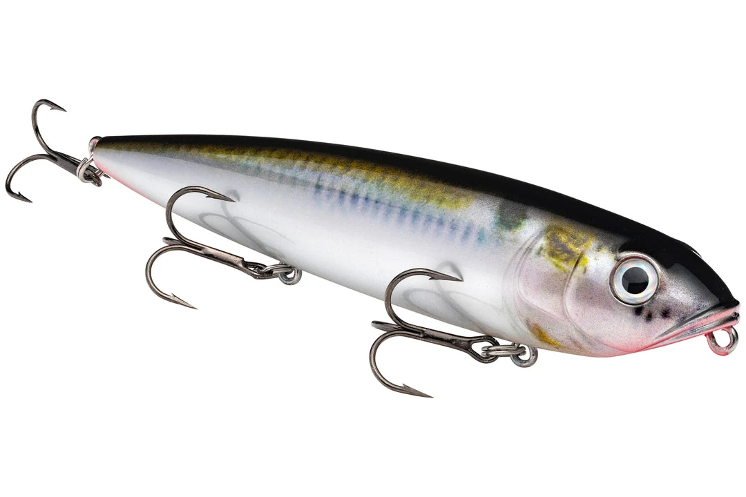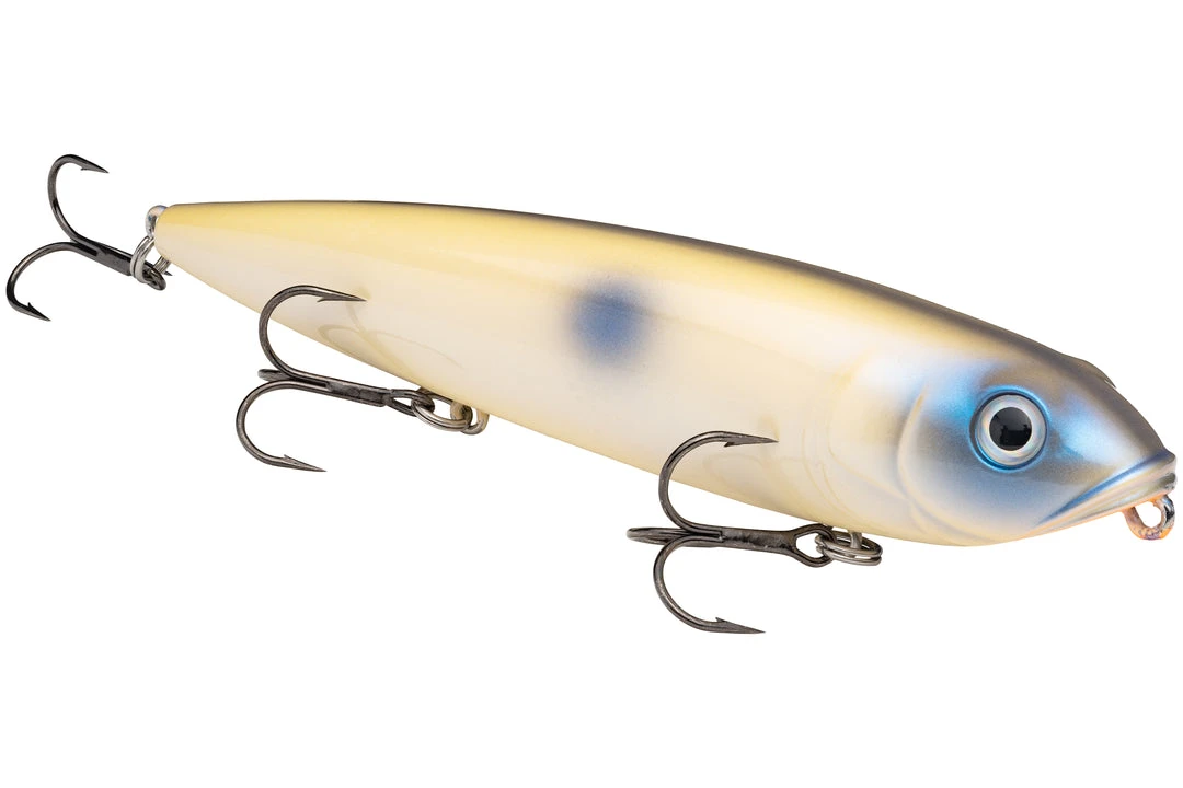 The Strike King KVD Mega Dawg Topwater Walker is a 6 inch, 2 ounce topwater walker made to be the premium oversized “walk-the-dog” (aka “Spook-style”) topwater lure. A supersized version of the top-selling Sexy Dawg, it retains its unique, streamlined body design that makes it come to life rhythmically with great side-to-side action walking action with a simple twitch of the rod tip. The large size makes it great for largemouth and stripers that are keyed in on larger forage. To upgrade its attention grabbing, it is fitted with a boisterous rattle chamber. Super-strong treble hooks make sure every strike is a catch. Available in 10 colors.