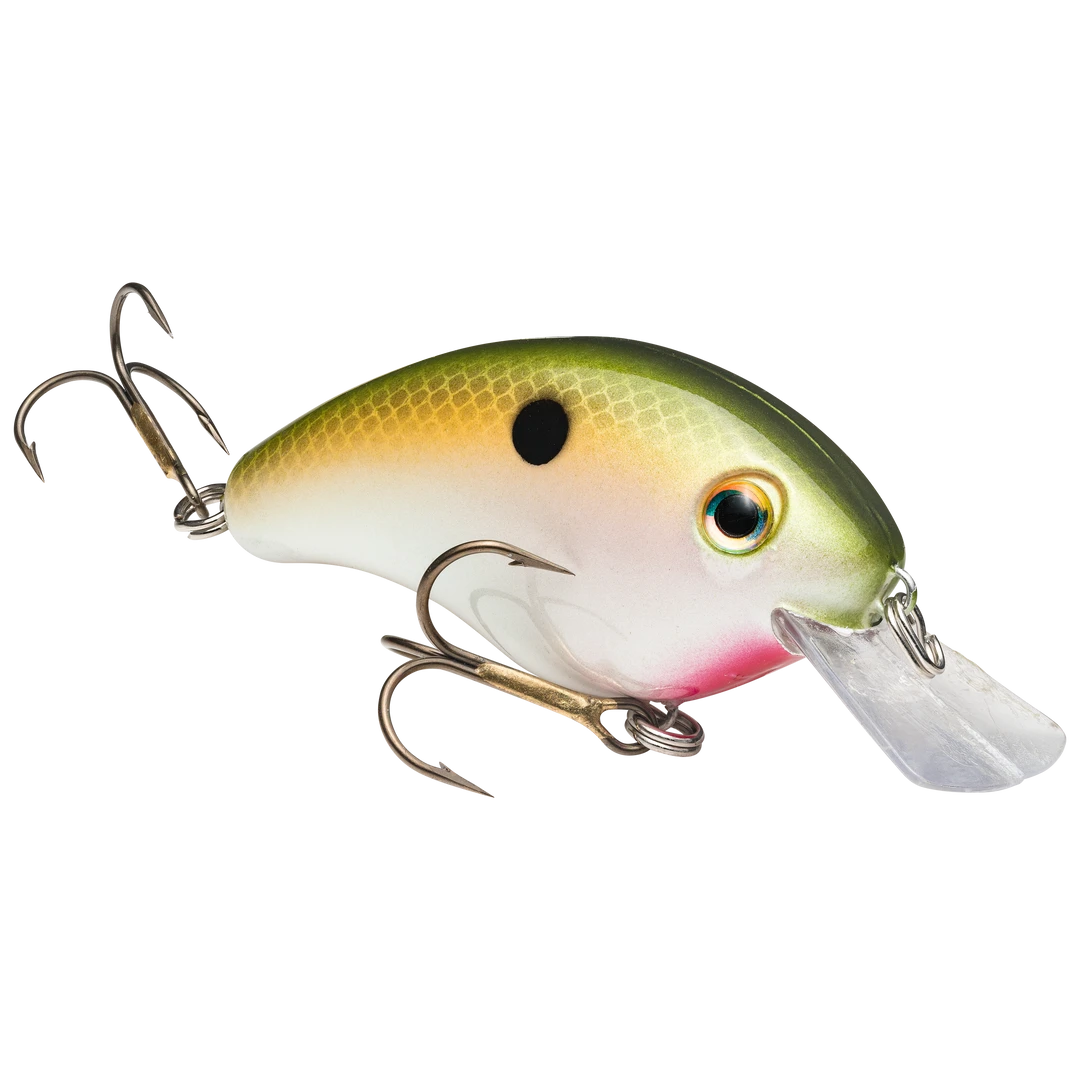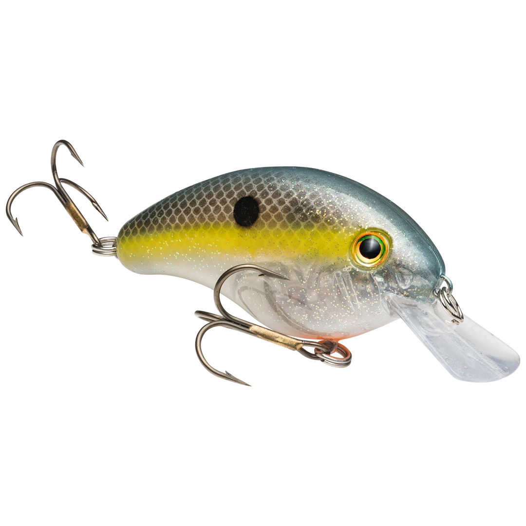 The Strike King Pro Model Series 4S is a 2 1/2 inch, 3/8 ounce shallow squarebill crankbait designed to target the 2 to 4 foot depth range. This squarebill dominates in stained water thanks to its wide wobble design, free-floating rattles, chip-resistant finishes, and lifelike 3D eyes. Its squarebill lets it crawl through all types of thick, shallow cover too. Available in over 10 colors.