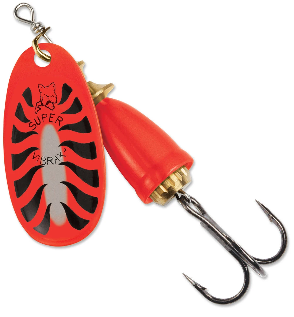 The Blue Fox Classic Vibrax is a time-honored and time-tested inline spinner from the eminent trout, salmon, and steelhead lure maker, Blue Fox. The Classic Vibrax offers a proven combination of flash and low-frequency vibration that triggers savage strikes while virtually eliminating line twists. These Painted Series Vibrax feature bold and vibrant color schemes designed to either match local forage, stick out in stained water, or elicit reaction strikes by employing colors that tap into fish’s predatory instincts. The Classic Vibrax is designed to run between 2 and 6 feet (depending on water current, type of line used, and lure weight). Available in 6 blade size and weight combinations that range from a size 0 blade lure that weighs 7/64 ounce, up to a size 6 blade lure that weighs 5/8 ounce.
