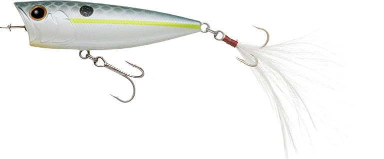 The Evergreen International OB-68 is Morizo Shimizu’s secret popper, and it’s about to be yours. The OB-68 is a culmination of all the skill and expertise that Shimizu expects from his popper, and Shimizu reaches for it not because he wants to fish on a topwater bait, but because the fish only respond to a topwater bait. The body, which is designed with its tail flipped up, reduces air resistance, cuts through head winds, and casts long distances to search a wider area. It has increased control due to better weight distribution and body balance. Furthermore, the three fish-appealing features that Shimizu seeks from a popper — spit, bubble and pop — are all achieved at a higher level. With a body balance that responds sensitively to rod work, it can handle with ease a variety of challenges, from slow action by standing trees or rocks, replicating high-speed action of a bait chased by backwaters, and turning action within a narrow traveling range to high-speed twitches. Hybrid rattles in four different materials — tungsten, brass, steel and glass — produce sounds in different frequencies, giving you a wider appeal to fish under various conditions. Pick the best spray, bubble, action, pop or rattle sound that best suits the conditions of the day to build your most effective game plan. Pretty soon you’ll be calling Evergreen International’s OB-68 your secret popper.