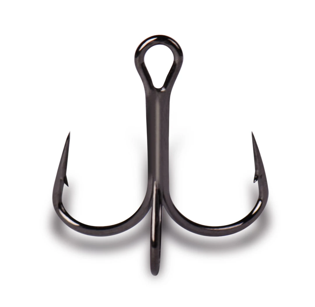 The specially engineered shape of the Mustad® KVD Elite Series Triple Grip® Treble Hook combines exceptional hooking and holding capability with outstanding strength. Based upon the original Triple Grip® series, the modified design of Kevin VanDam features a precise shape that almost locks a fish into the elbow of the bend, making it virtually impossible to throw the hook. The precise point alignment provides for an optimal angle of point impact, which leads to increased power at hook set. One important bonus is that the angled shape makes this hook less prone to snagging on structure than round bend trebles. Use it on your favorite heavier freshwater crank baits to get more hookups, for dead baiting or as a soft bait stinger hook. The 1X extra heavy wire provides all the strength you need to tackle big fish. Black nickel finish. Available in hook sizes ranging from 6 to 1/0.