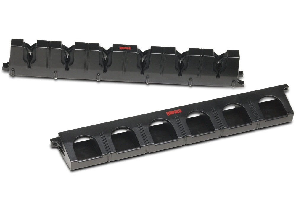 Long lasting plastic jaws hold a variety of rod sizes without deforming or damaging the blank. Designed to keep up to six rods and combos organized and safe on any surface, in any orientation – horizontal, vertical – even on the ceiling. Simple base grip holder takes the pressure off rod eyes eliminating damage. Durable construction for a lifetime or use. All required mounting hardware included.
