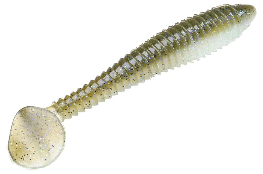 Grab the Strike King Rage Swimmer Soft Paddle Tail Swimbait for unbeatable action that ensures big bites from big predators! Featuring a thinned-tail that ends in a pancake-like disc, a sleek nose cone, and a soft ribbed body, it produces frantic vibrations underwater even at the slowest of movements. It provokes immediate action when pinned on a jig, nose-hooked on a dropshot rig, trailed on a spinnerbait, or on a 4/0 hook alone. If you like Keitech Swing Impacts, but prefer coffee scent over squid/fish scent, be sure to try these out. Available in 4 sizes and several color schemes to fit any condition — a true winner when it comes to versatility.