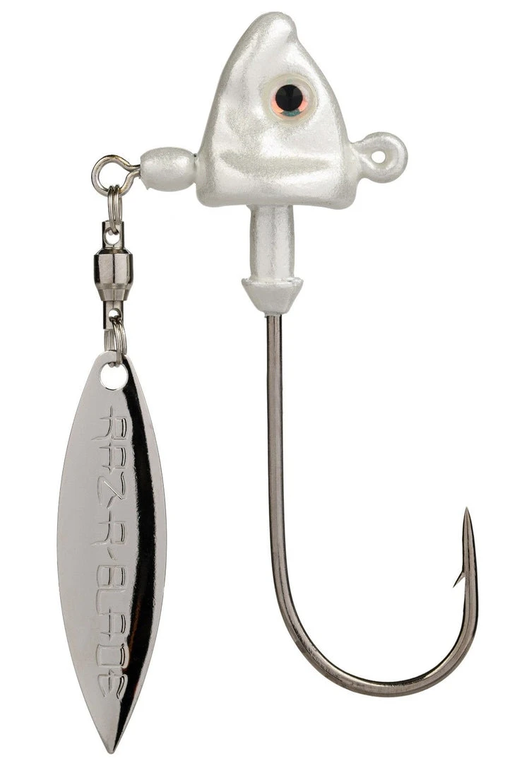 Get Tour Grade quality while giving Bass a different look! The Strike King Tour Grade Spin Head Underspin Jig’s unique fish shaped head adds urgency to the already attractive free-turning blade. The swivel drop with ball bearing swivel, combined with Strike King’s unique thin-cut Raz-R-Blade Willow blade, puts out maximum flash and thump even at the slowest of speeds. It is extremely lethal with its 4/0 Needlepoint hook and available in 3 classic Bass-catching colors, it’s also covered with chip-resistant paint to maximize durability.
