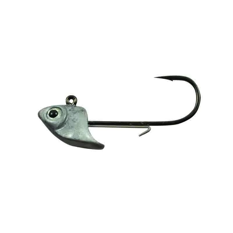 The Fish Head V3 Balance Force Swimbait Jighead is a swimbait jig head. Designed by MLF Pro Angler Greg Vinson, the Fish Head V3 Balance Force Jighead is perfectly balanced in a horizontal position, making it the ideal year-round jighead for vertical jigging techniques. Utilizing a 90-degree vertical line tie super sharp Gamakatsu 2/0 Black Nickel hook the Fish Head V3 realistic baitfish profile produces solid hook-ups, while a molded wire keeper holds your soft plastic bait securely in place.