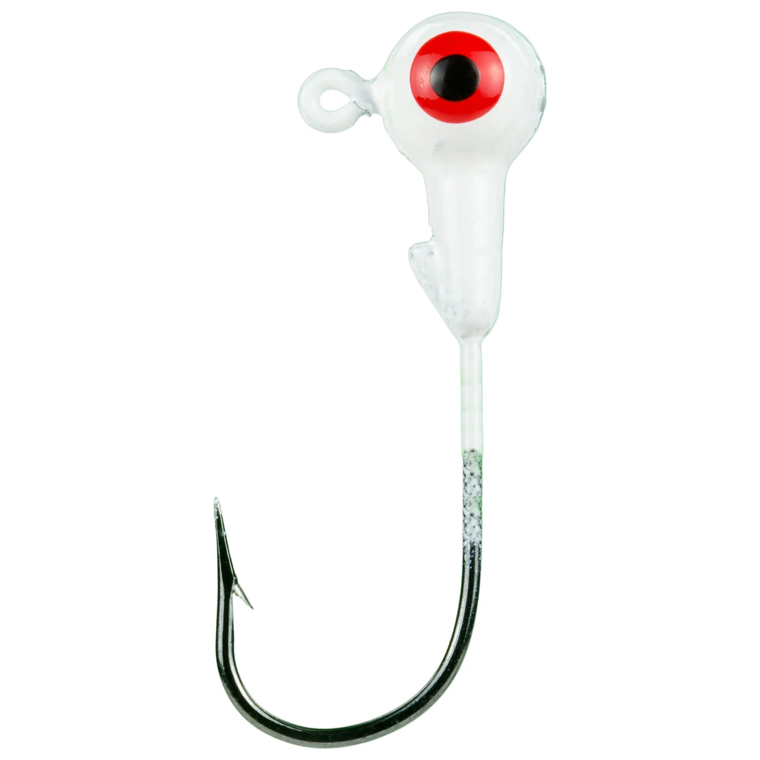 Strike King Mr. Crappie Jigheads are small, round lead head panfish jigs that come painted or unpainted, with painted models featuring a painted eye on the head. The jigs are built around a #2 Eagle Claw LaZer Sharp platinum black hook, ensuring easy penetration and dependable hook sets. Great for both vertical jigging, casting, and trolling on spider rigs. Available in 6 colors and 3 weights: 1/32 ounce, 1/16 ounce, and 1/8 ounce.