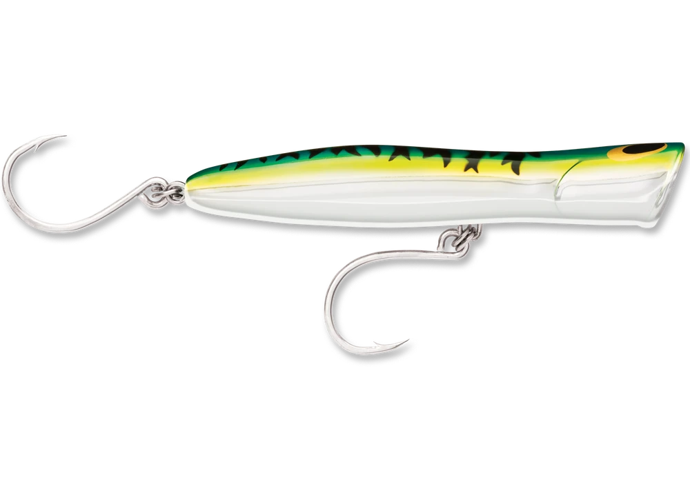 The Williamson Popper Pro 130 is a 5 inch and 1 1/4 ounce topwater popper lure built tough for saltwater applications. True to its name, the Popper Pro 130 is the real pro in traditional popping action. Featuring a rugged stainless steel through wire construction, even the toothy-est, most vicious saltwater gamefish won’t be able to escape after a strike. Additionally, it’s weighted perfectly for perfect casting aerodynamics, giving it the maximum casting distance. Although mainly crafted as a popper, it is also designed to allow for a wide array of applications: pop on the top, slash and stall or, classic walk the dog. Equipped with VMC Inline Single Hook, the Williamson Popper Pro 130 is available in 10 fish-catching colors.